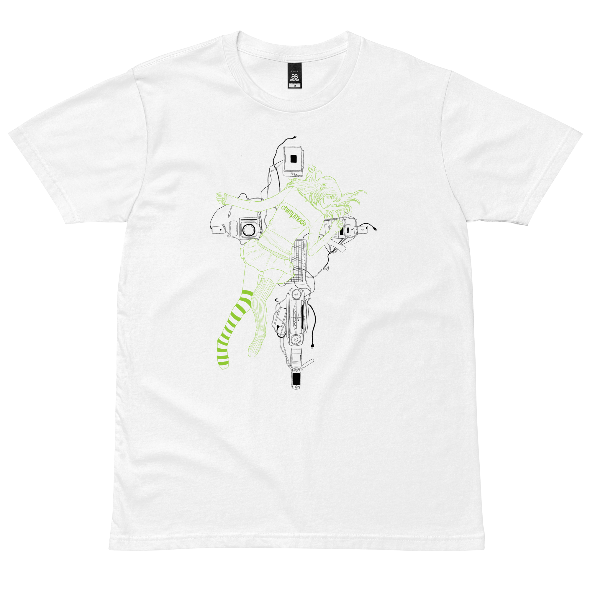 Disconnected tee in white. Graphic drawn by Dizzy :D